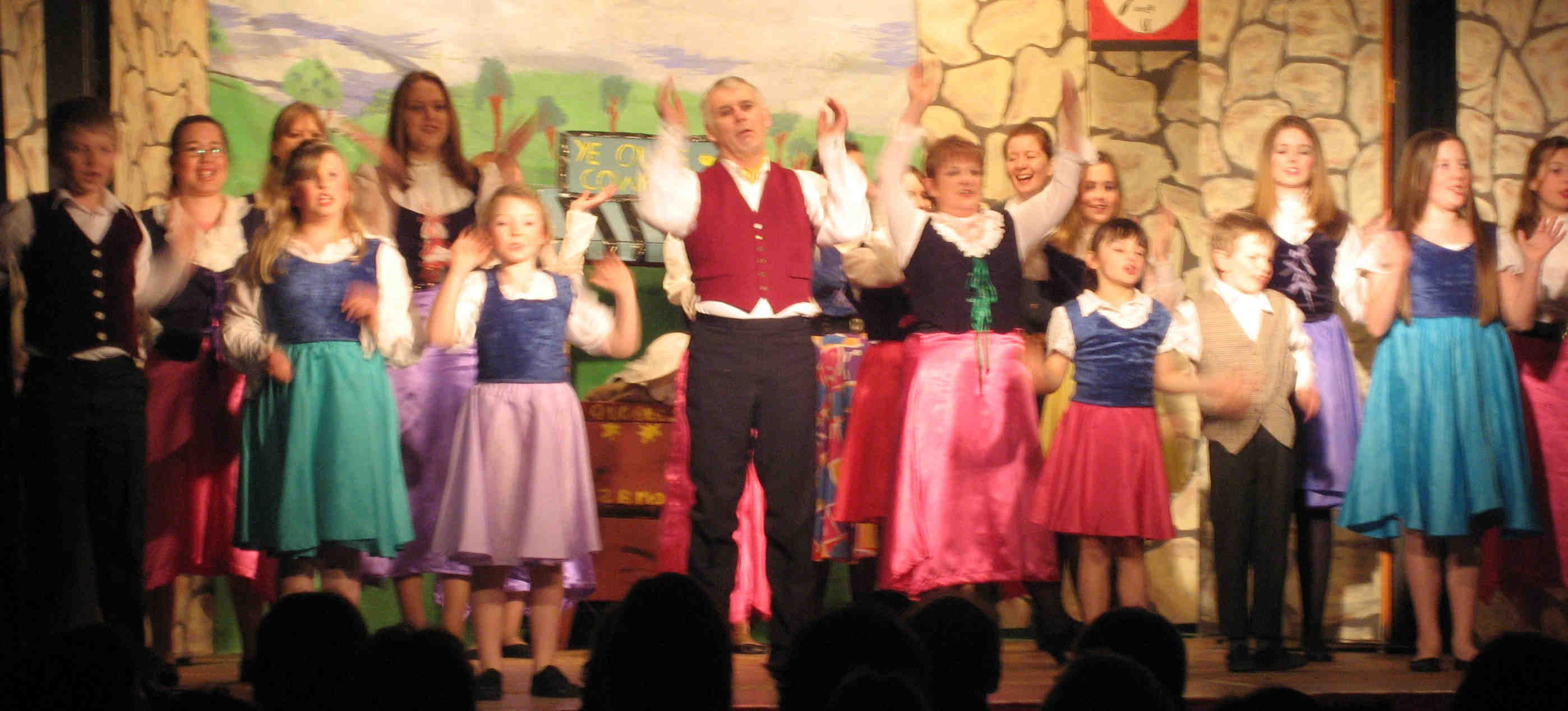 The Chorus in full dance and song outside Widow English's cottage |