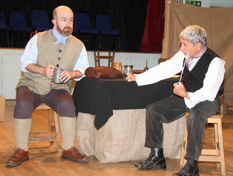 Charles Fitt (Steve Baker) farmer of Selborne, and Timothy Loe (Neil Hardinge) clerk to Selborne vestry, meet with Robert Holdaway (R, Rod Sharp) in The Compasses to discuss the current problems |