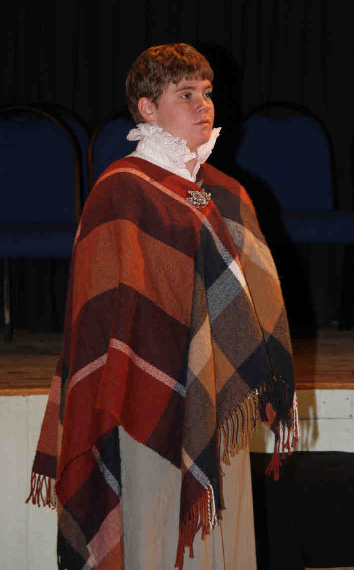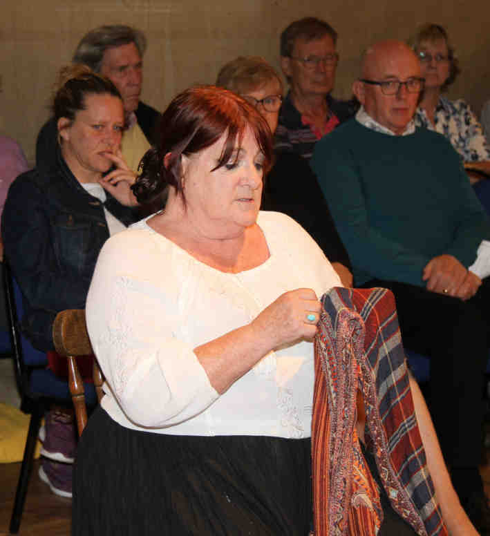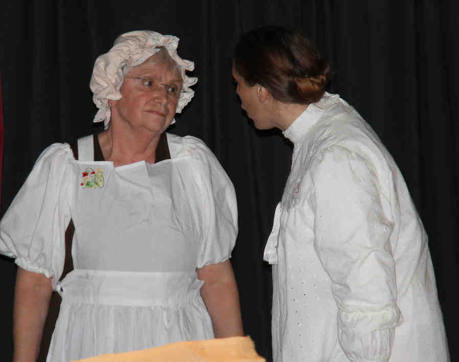 Mrs Newland (Dil Williamson-Smith), the Trumpeter's wife, sits at home discussing the situation |