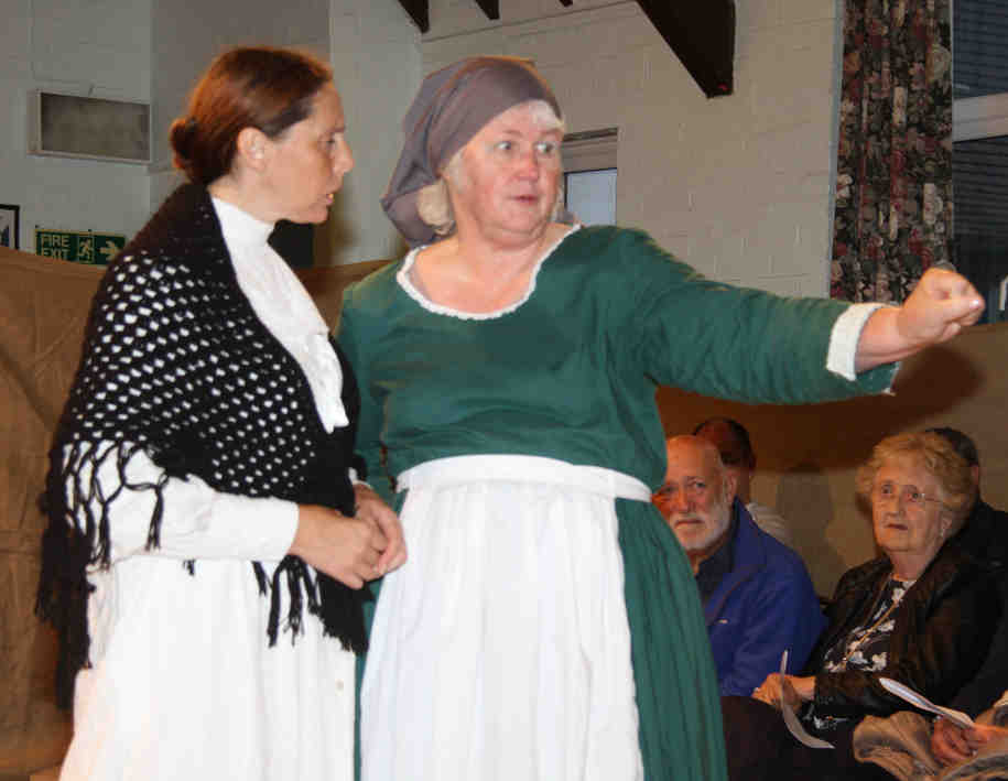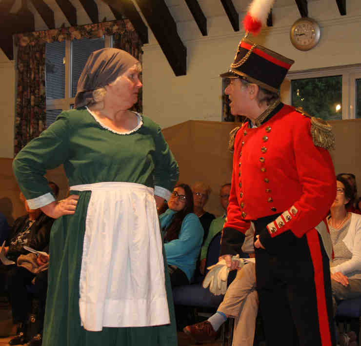 Mrs Lickfold (Abby Hibberd), a shopkeeper's wife in Headley, keeps the audience informed as to what's going on. |