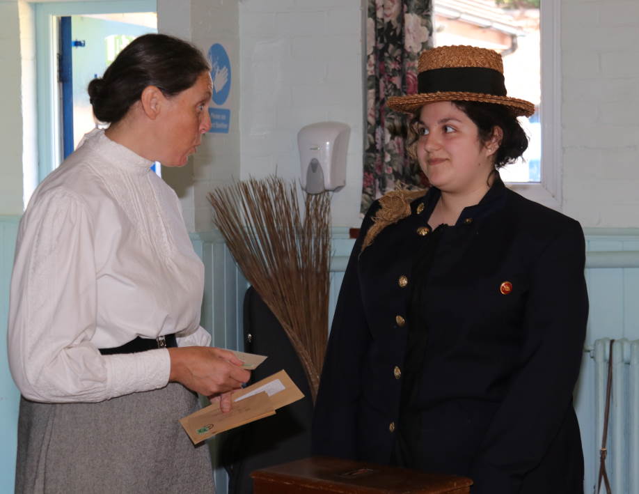 | Joe Leggett withdraws 2 shillings from his savings account at the post office John Thompson makes sure he fills the form out correctly! |