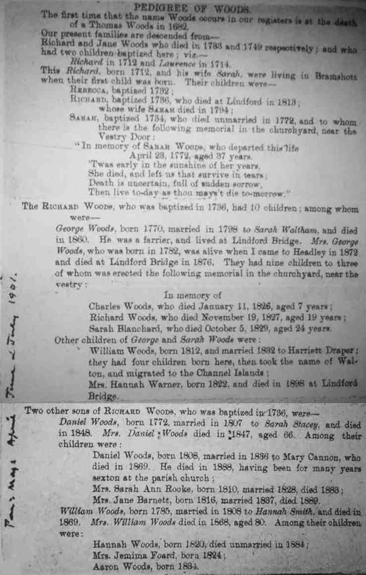 W? Lickfold = né 1843 & had a good memory & told me much in 20th