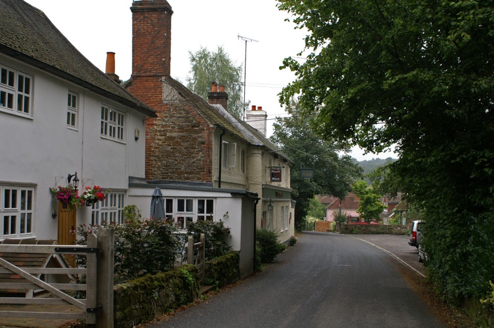 | p.48: View over The Wheatsheaf and up Barley Mow Hill. The