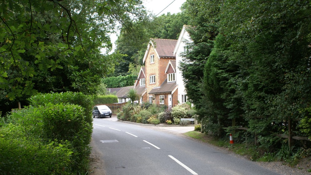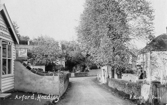 | p.43: Road junction in Arford: left, Lickfold's Garage; right,
