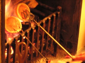 It's that time of year again. Flora Thompson said that in her youth (the 1880s) the first tea of the season by lamplight was called "The Little Festival of the Toasting-fork." This was ours in 2007. And since our friends don't have a chimney, we invited them round and sent their children's messages up to Santa Claus in the traditional way. Now we wait to see whose chimney the presents come down! There have been a couple of instances in the past week which made me think of the changing influence of time on our language. The first was from the same Flora Thompson when she wrote, in the 1920s, of people who would 'fly to the mountains'. She didn't mean taking an aeroplane, as we would assume if we read it today. Even though aeroplanes were around at that time, the phrase still didn't have that connotation in those days. She simply meant 'escape to' or 'get away to'. |